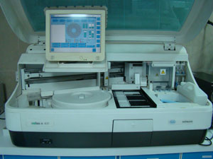 جهاز الكوباس الخاص بتحاليل الهرمونات والفيروسات ودلائل الاورام وهو الجهاز الاحدث والاعلى دقه على مستوى العالم فى هذه التحاليل وهو يبانى الصنع موديل هيتاشى ويوجد بالمراكز والمستشفيات الكبرى فقط